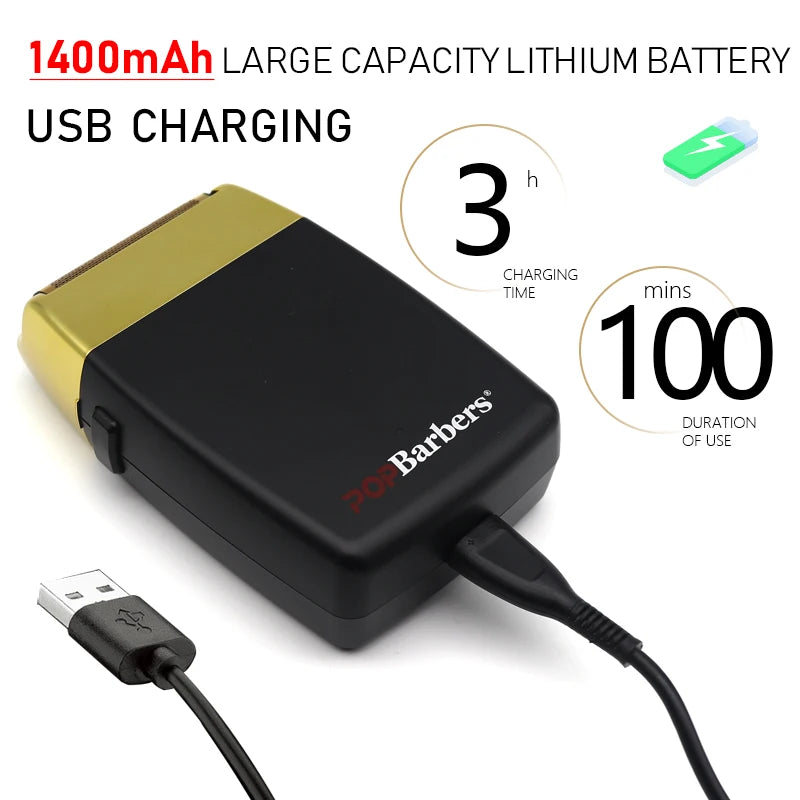 11000 RPM POP Barbers P620 Professional Electric Men's Beard Trimmer Double Foil Shaver Electric Shaver USB Hair Cutting Machine