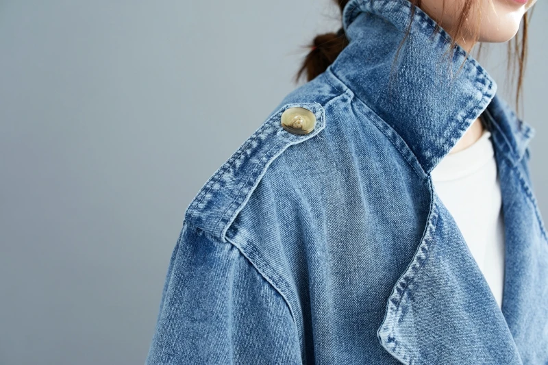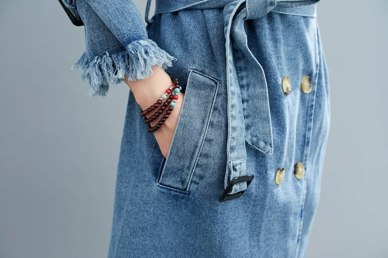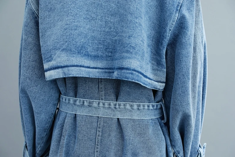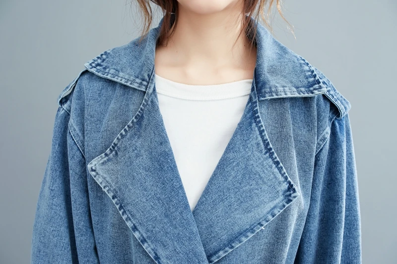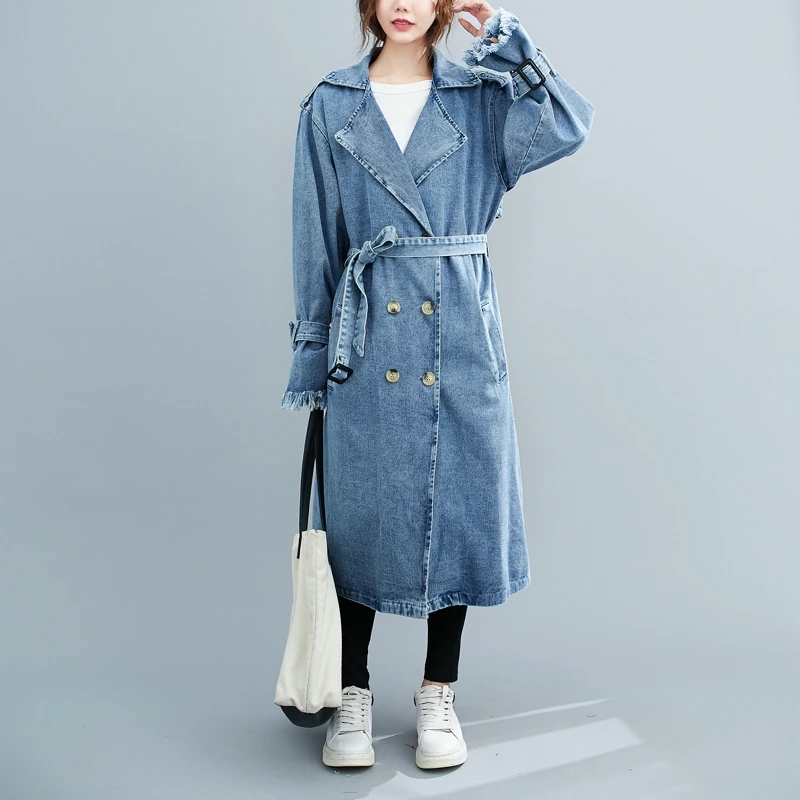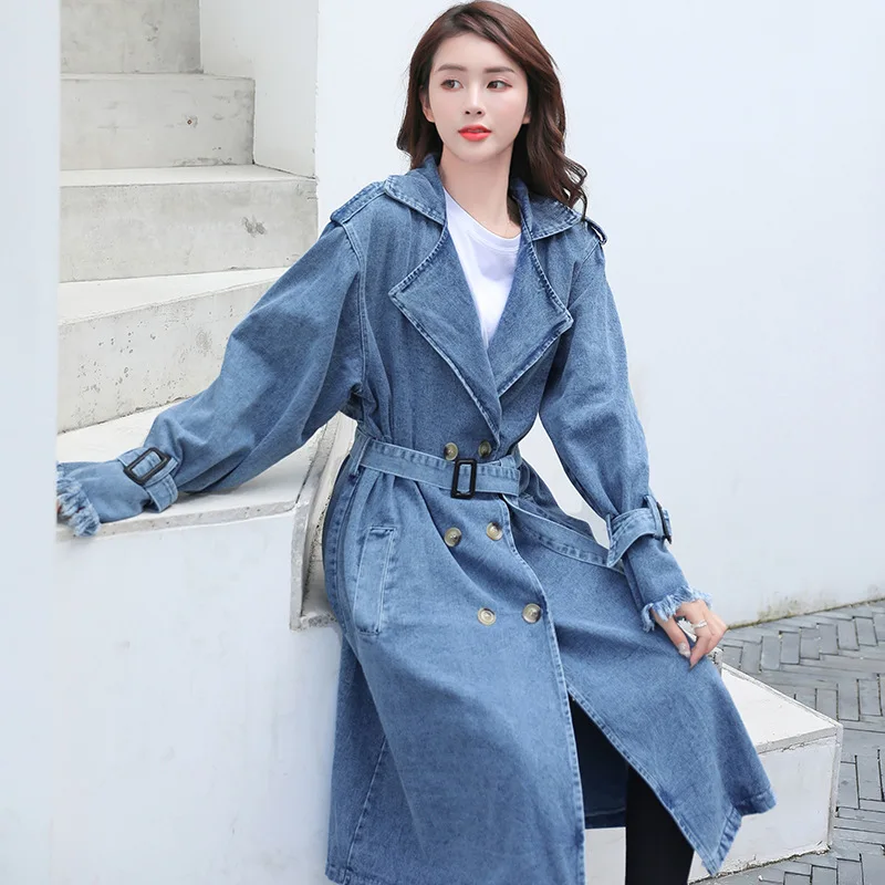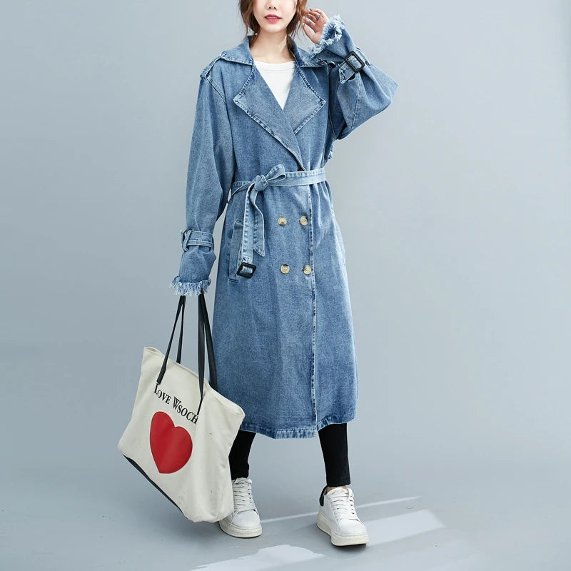 2025 Women's Denim Trench Coat Autumn Double Breasted Belted Casual Jean Overcoat Loose Long Windbreaker Jacket Couple Models