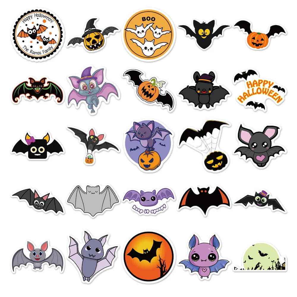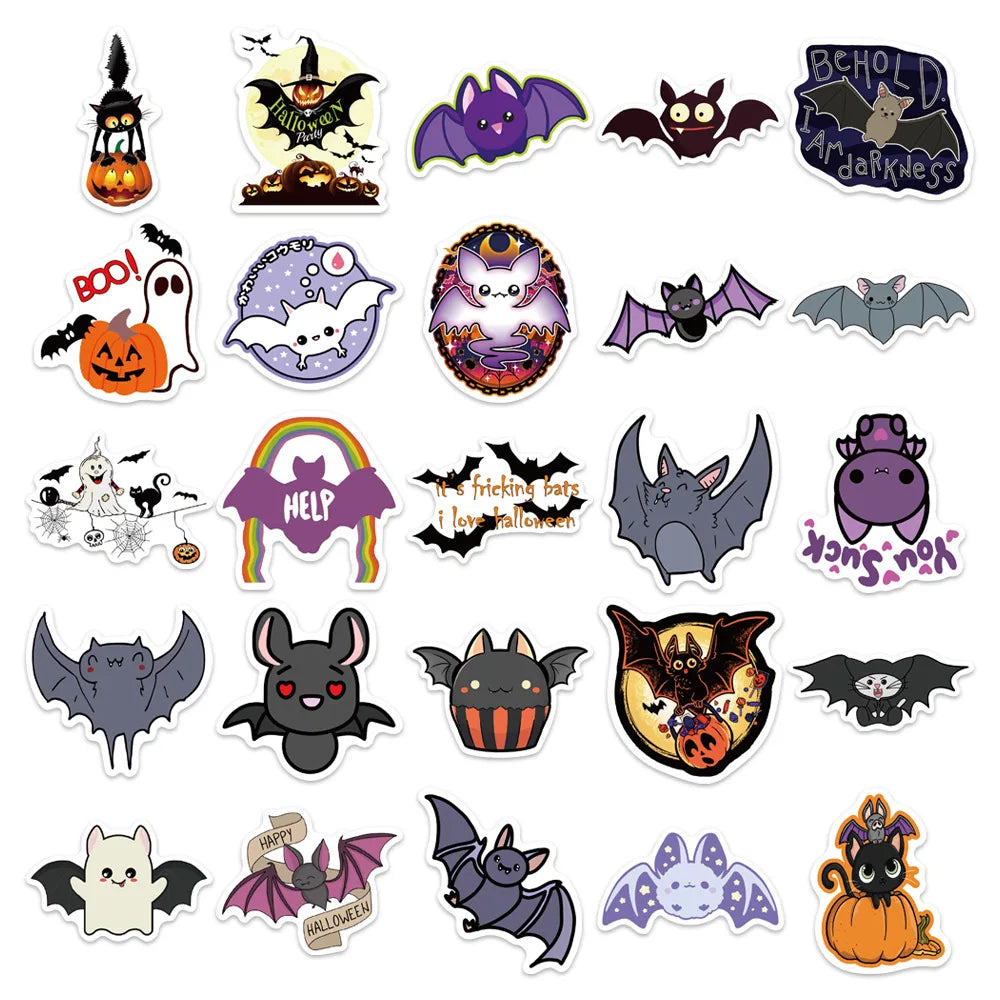 50PCS Halloween Purple Bat Stickers Streetwear Laptop Happy Halloween Elements Harajuku Wall Bar Fashion Living Room Sticker