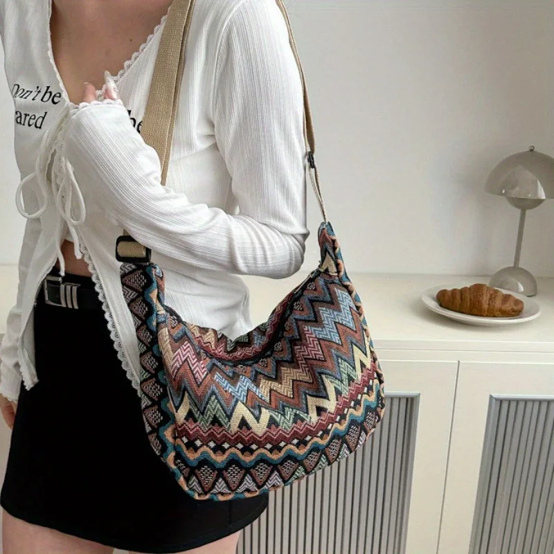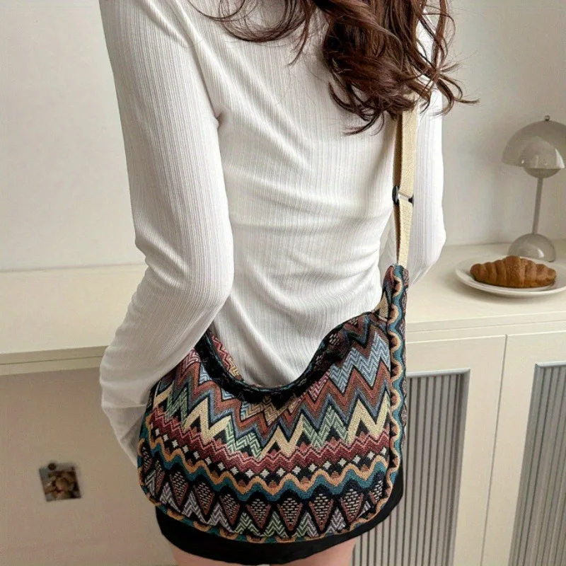 Bohemian Style Crossbody Bag Large Capacity Stylish Chest Bag Dumpling Backpack Heavy Canvas The Shoulder Strap Adjustable