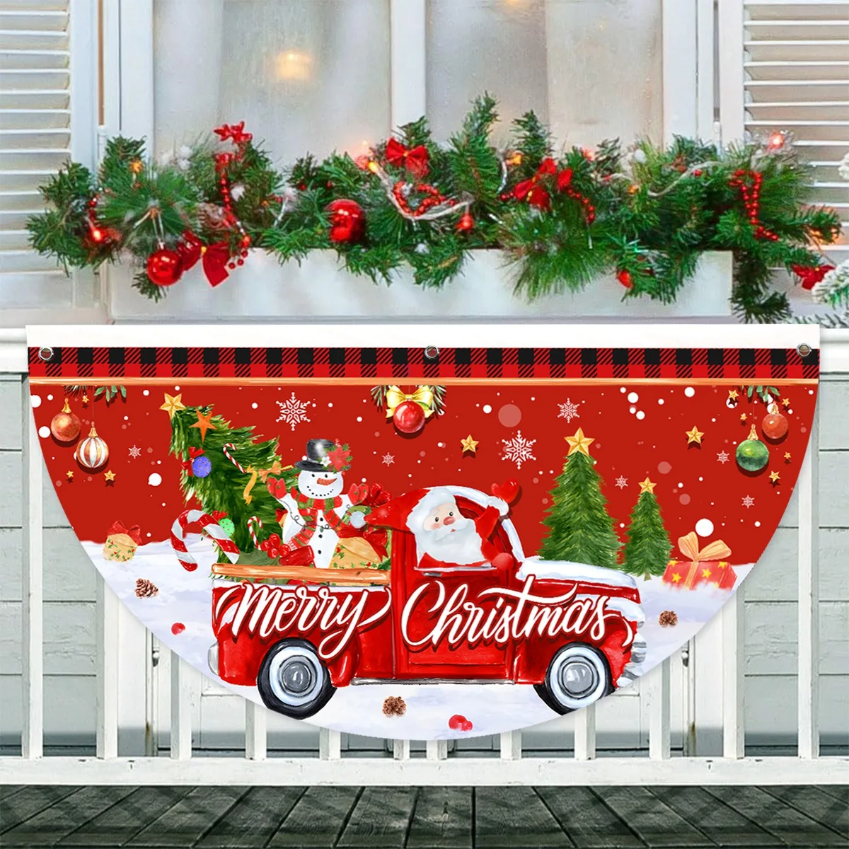 Christmas Fan-shaped Flag Outdoor Hanging Banner Christmas Decoration for Home 2025 Xmas Flag Navidad Natal Gifts New Year 2026