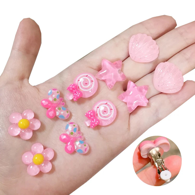 clip on earing girls children Pink jewelry child clip earrings Butterfly Shell Star flower ear clip for kids gift 5 Pairs