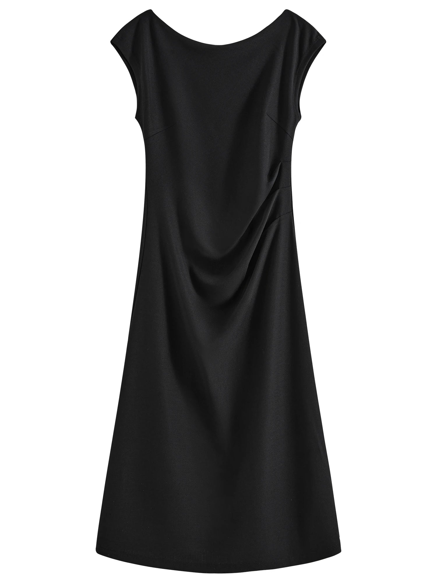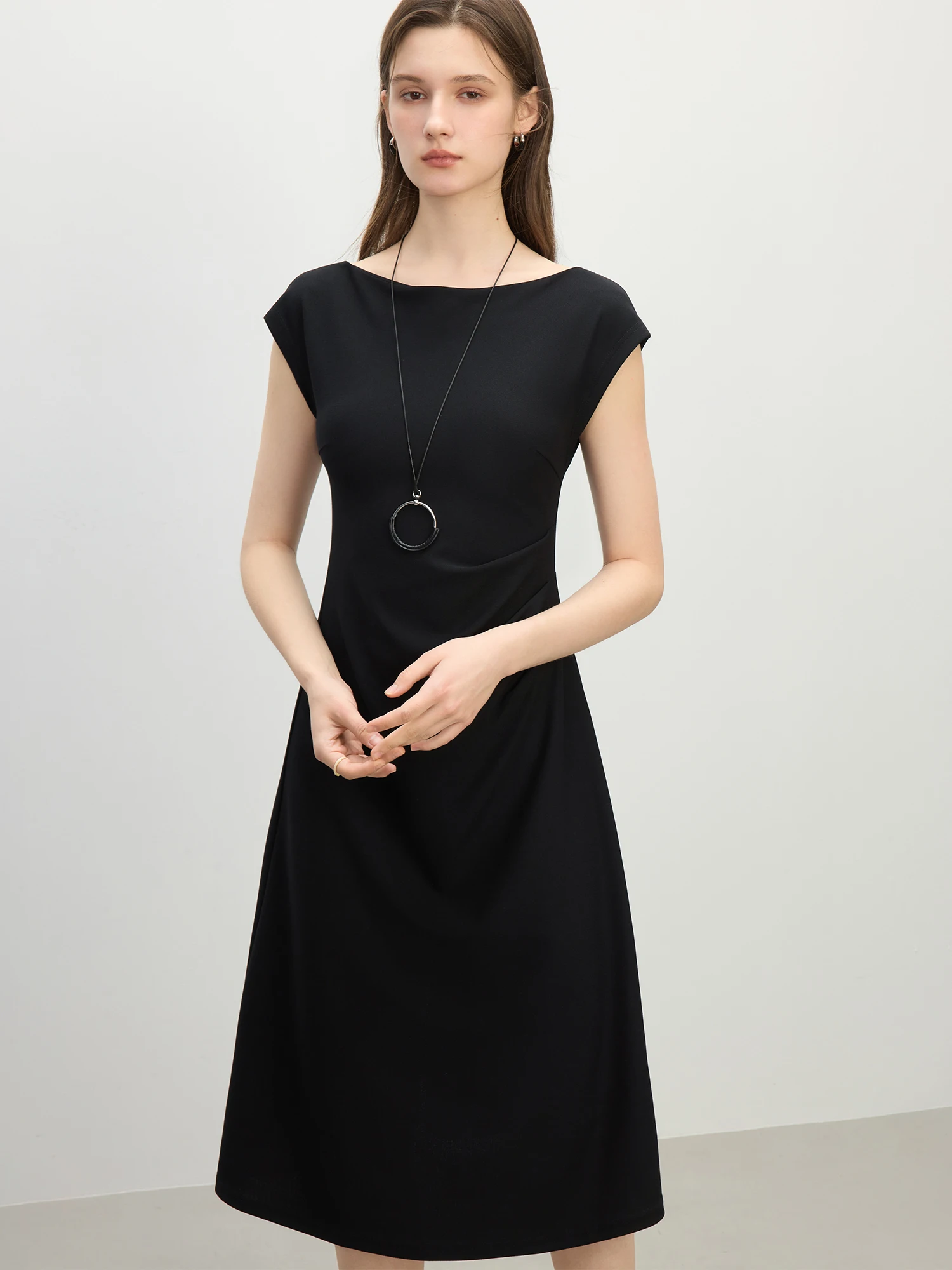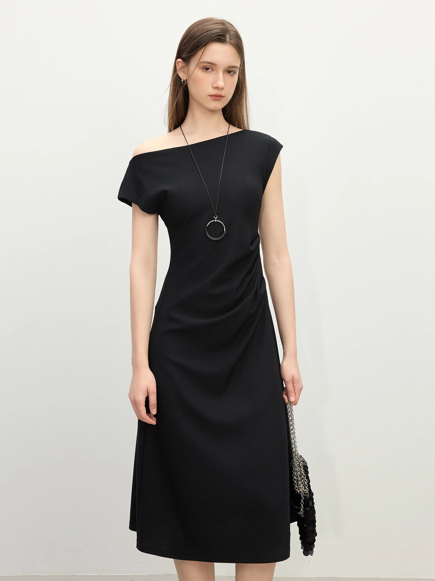 FSLE 2025 Summer Off-Shoulder Sleeveless Dress Designer Belted Waist A-Line Midi French Inspired Chic Outfit Casual Loose Dress