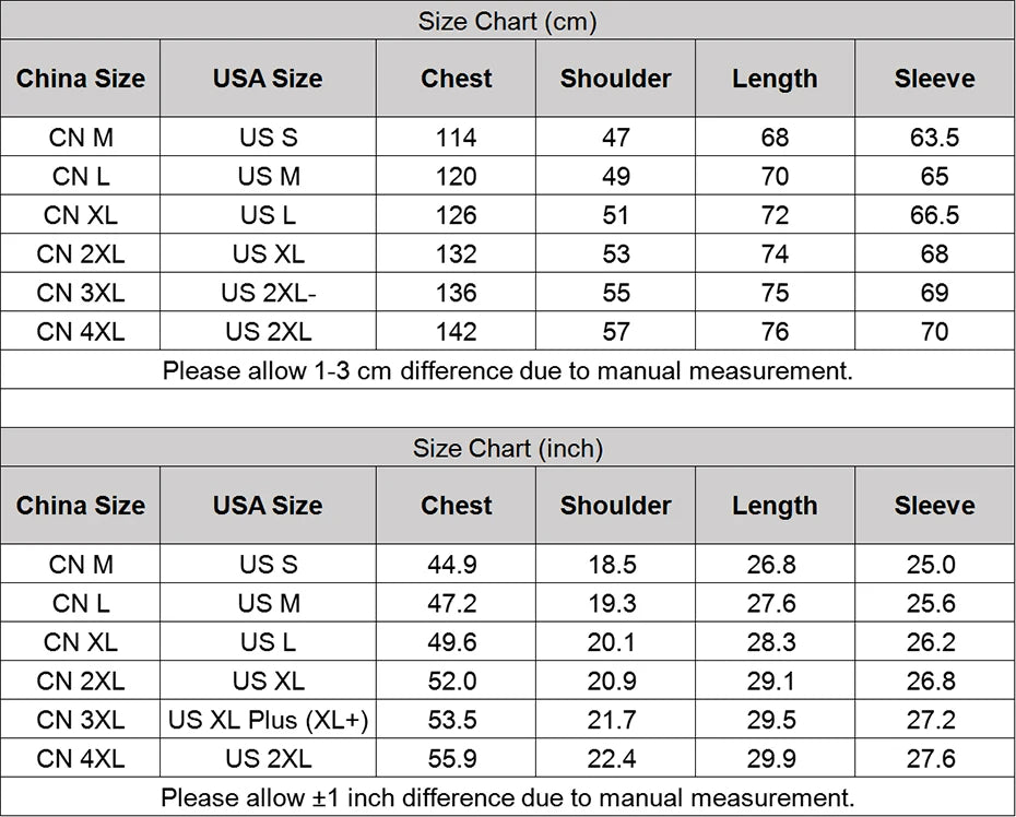 1. This jacket default tag size is Amercian size (US S-2XL).