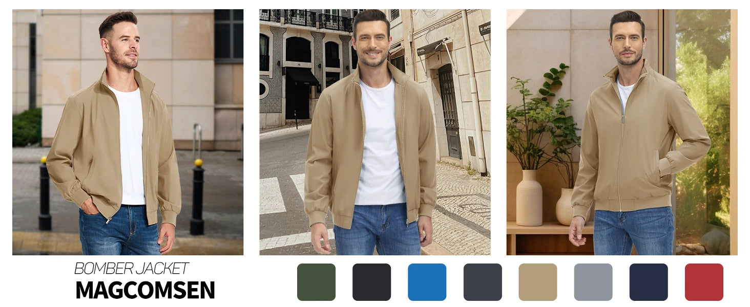 MAGCOMSEN Lightweight Jacket Men's Windproof Waterproof Zip Up Coat Stand Up Collar Windbreaker with 3 Pockets Outerwear