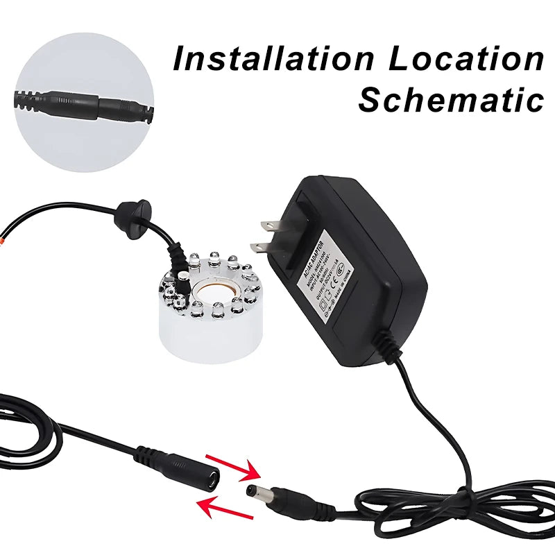 Just put ultrasonic mister in water then switch on power, mist come out. Best water level is 2-3cm higher than sensor on upper edge. Long length power adapter cable satisfy indoor or outdoor fountains, water feature, and office use.