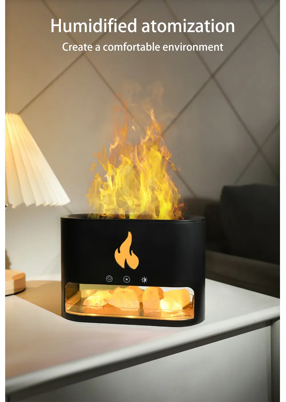 New Fireplace Humidifier Crystal Salt Rock Fire Lamp 7 Color Flame Aroma Volcano Air Humidifier Essential Oil Diffuser for Home