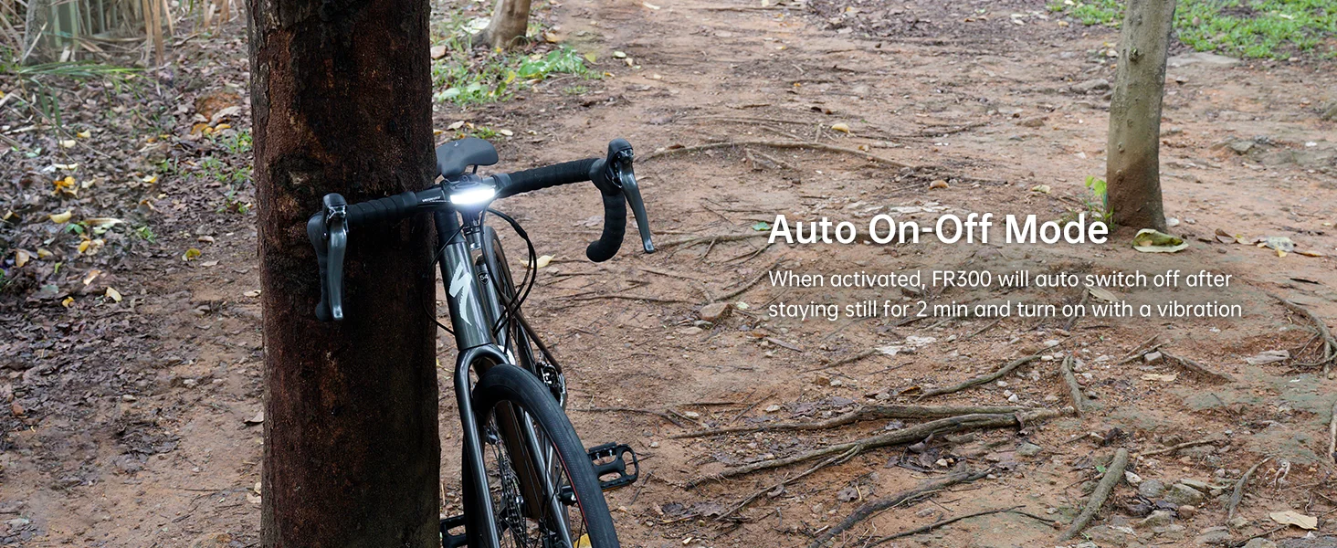 【Auto on/off Mode】FR300 is designed for riding safety, which can greatly increase the possibility of being noticed by passers-by and vehicles around. In order to save power, it also has an auto on/off function. If you are still for 2 minutes, the light will turn off and the vibration will turn on again. No worry about forgetting to turn off the light.