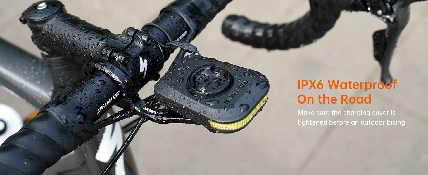 【IPX 6 Water-Resistance Design】The light is usable when riding in the rain(Make sure the cap of the charging port is securely mounted after charging).It adopts an aluminum alloy base like cycling computers to withstand greater strength.