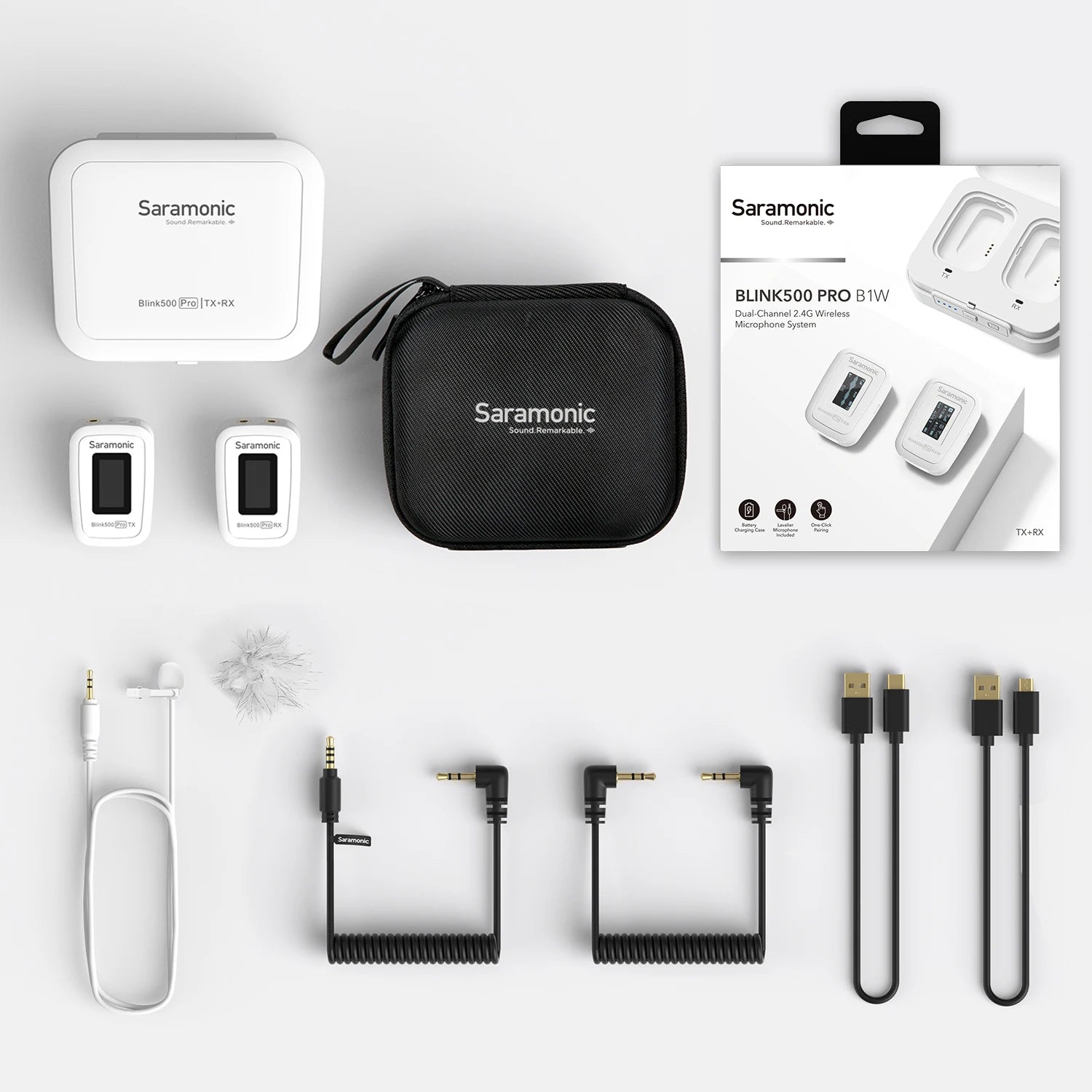 The Saramonic Blink500 Pro systems are incredibly lightweight, ultracompact and easy-to-use wireless microphone system for up to 2 people. The microphone delivers exceptional, broadcast-quality soundto DSLR, Mirrorless and Video cameras, Smartphones, Tablets, Computers, and more.