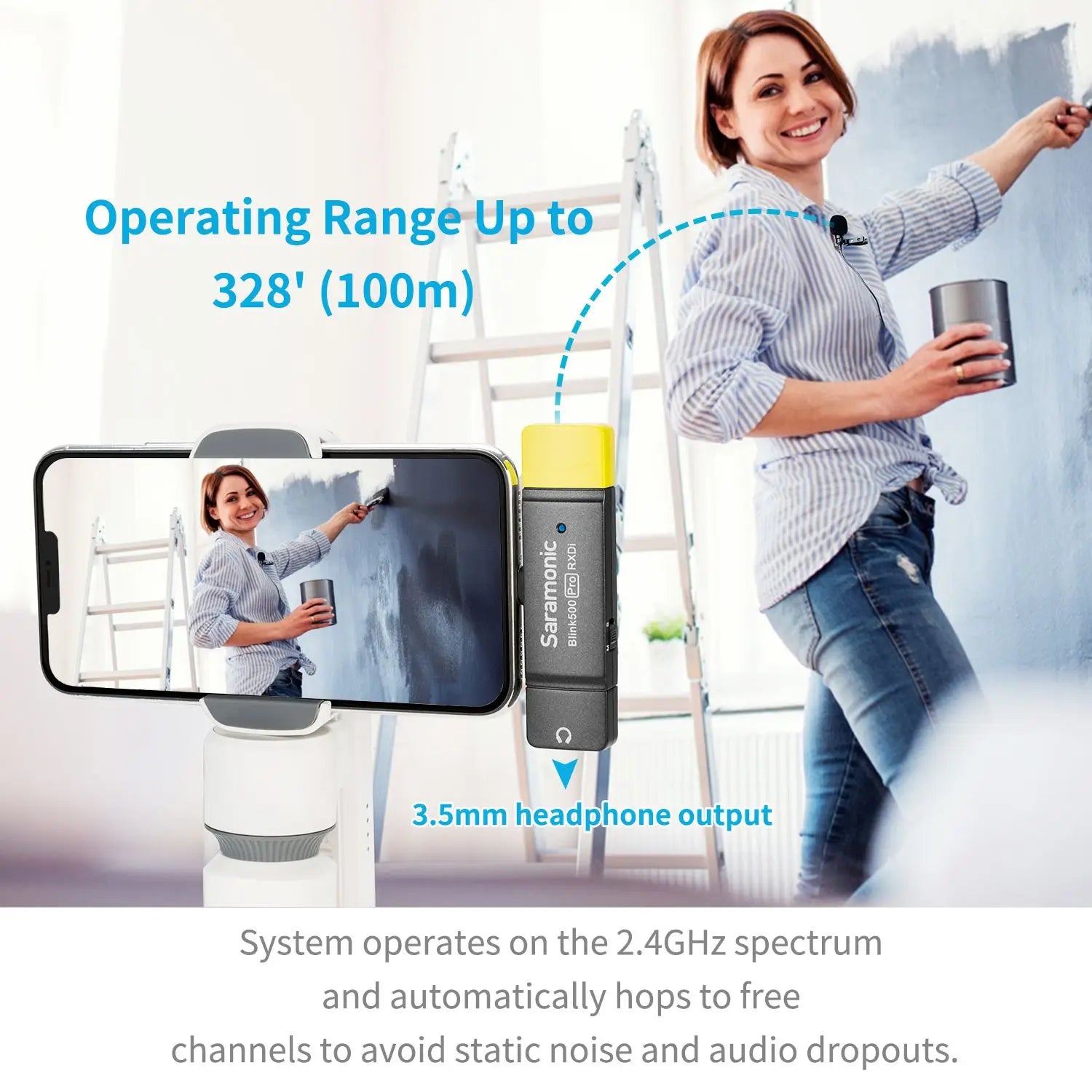 Saramonic Blink500 Pro Wireless Lavalier Microphone for iPhone Android PC Computer DSLR Cameras Youtube Recording Streaming Vlog