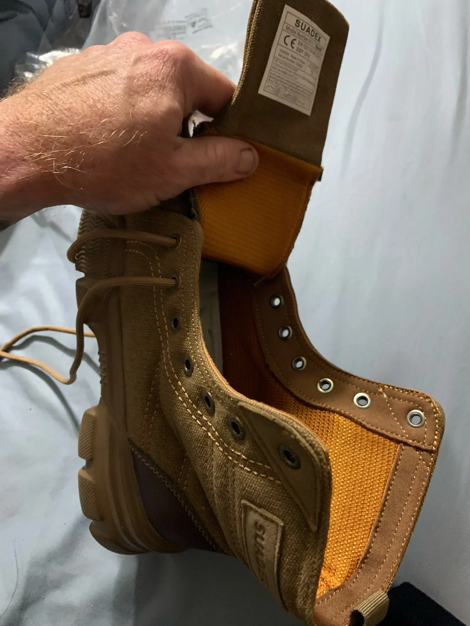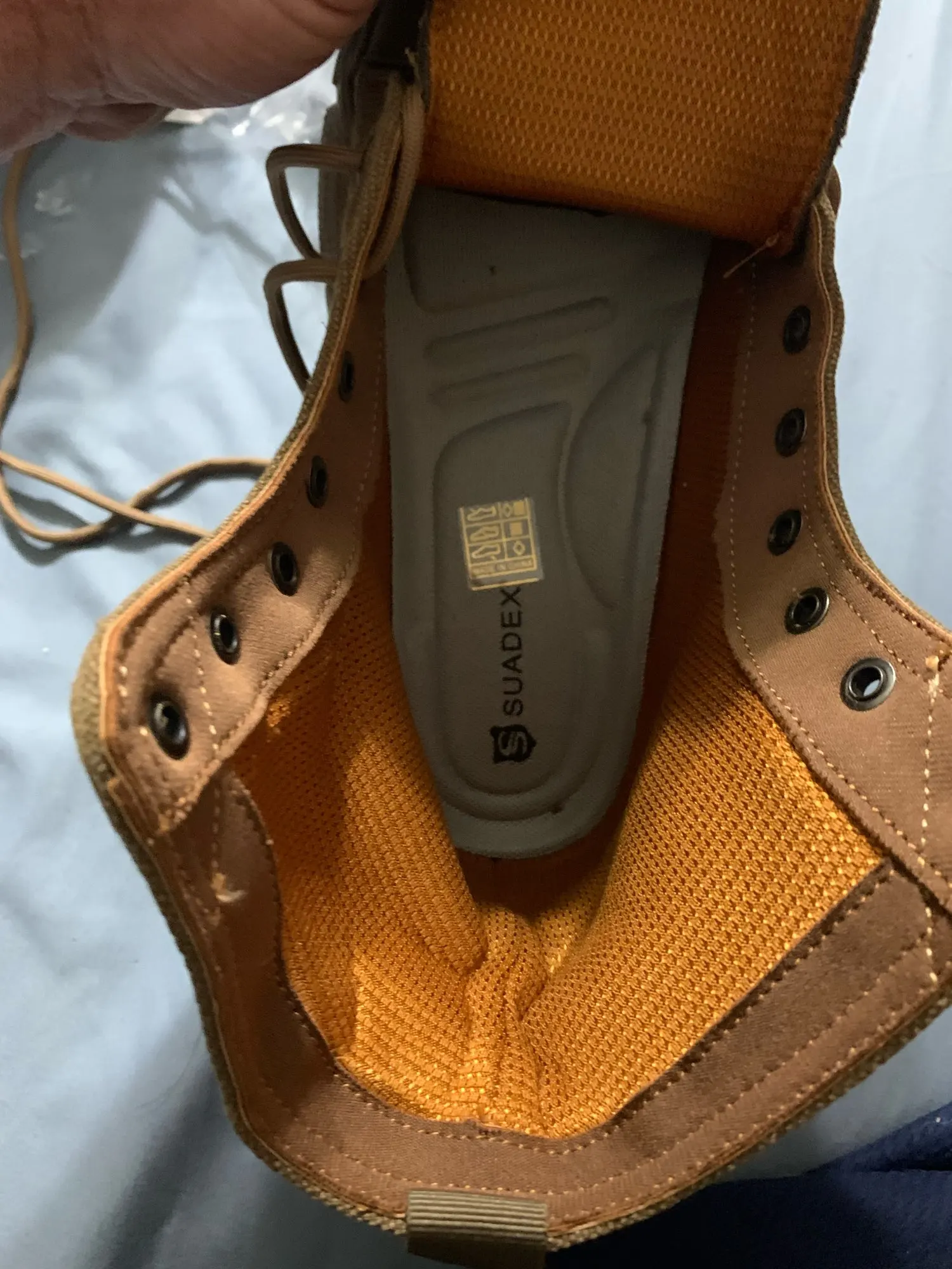 Very comfortable boots and extremely lightweight. Have two identical pair of these, albeit marked as separate manufacturers, so this review applies to both. Anyone interested in these, the tongue is not connected to the eyelet area so they are nothing to be considered water resistant. Be forewarned also, they are not for heavy duty industrial/construction use, as i’ve been wearing mine for almost 2 weeks worth of work now and the tread is almost completely smooth and nonexistent (i work 60 hours a week and most of which are on my feet in construction).
