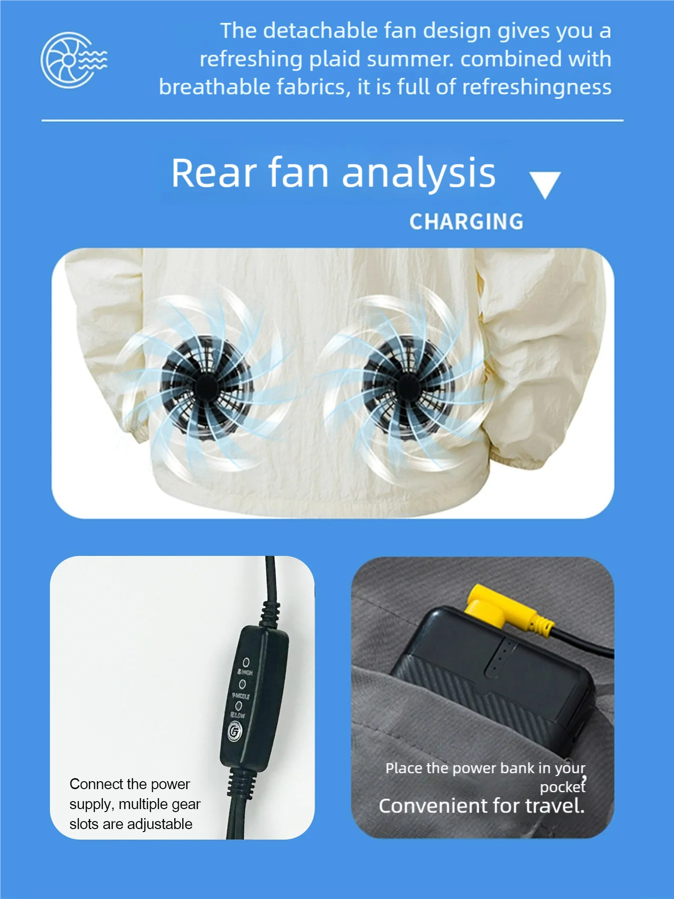 Before washing the clothes, take downthe mobile power supply and the fan.