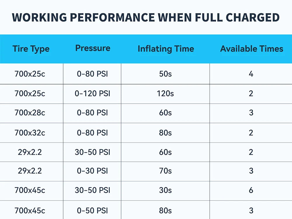 Range: 2 times 110PSI (700 * 25C road tires: 0-110PSI)