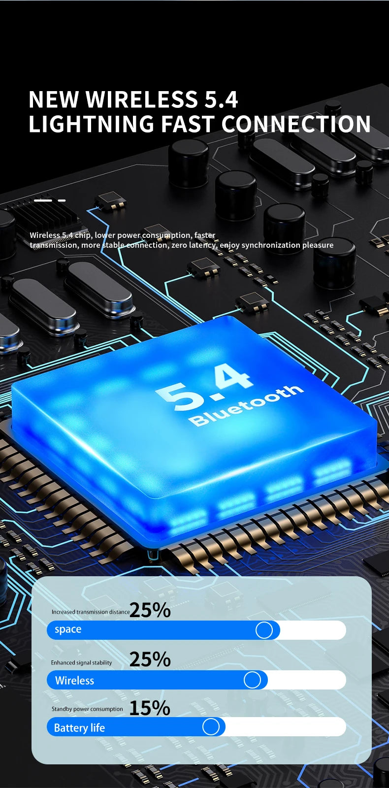 Using the newly upgraded 5.4 high version Bluetooth chip, it has higher compatibility and faster and more stable data transmission.