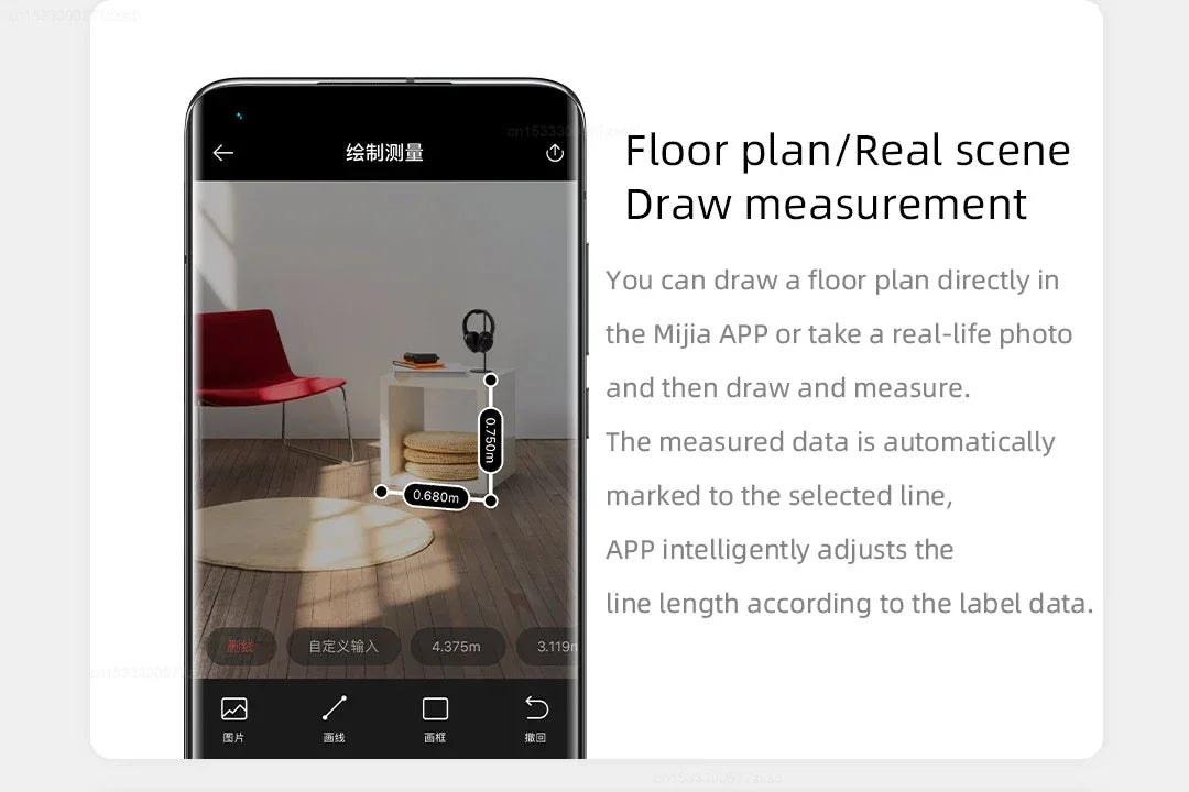 Xiaomi Mijia Smart Laser Range Finder Tape Measure Work with Mi Home APP Laser Rangefinder Distance Meter Digital Device Tools