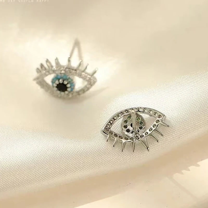 YILUOCD 925 Sterling Silver Zircon Blue Evil Eye Stud Earrings for Women Simple Demon Eyes Piercing Jewelry New Year Gift